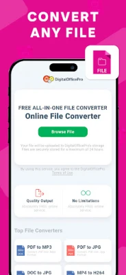 File Converter is a free media conversion app that allows you to convert any document, image, video and audio files to various formats. Convert as many as you want, unlike other services, our File Converter app has no limit on the number of files you can convert.