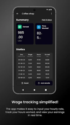 Real-time Earnings: Stay updated on your income as it happens. Effortless Wage Monitoring: No more complex calculations or paperwork. User-Friendly Interface: Easily input your rate and track hours with just a few clicks. Streamlined Financial Management: Say goodbye to wage-related stress and confusion.