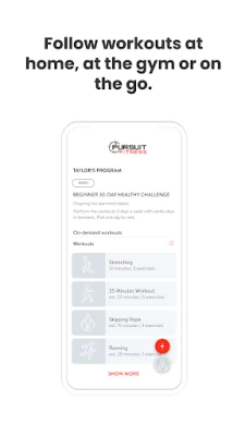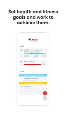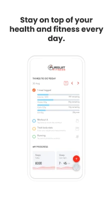 With the Pursuit Fitness App, you can start tracking your workouts and meals, measuring results, and achieving your fitness goals, all with the help of your personal trainer.