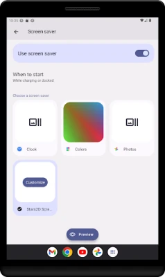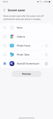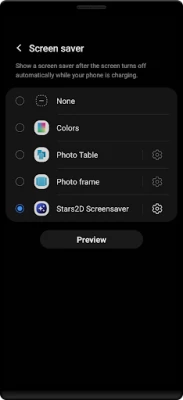 3. Select Stars2D as your Screen saver (Daydream) and plug in or dock your device. When charging ends, you’ll get the charge-end alert while the starfield runs during charging/docked.
