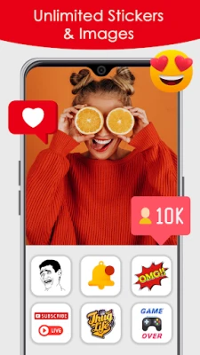 Thumbnail for video needs to be impressive so thumbnail creator app has huge collection of stickers, arts, basic shapes, symbols, smiley emoji, funny stickers, gamming stickers, special effects etc.